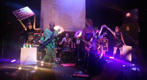 That’s a big part of why the recent “Audit Hell” fundraiser at Triple Rock was such a vital event. Its stated purpose may have been to raise funds and awareness for the couple’s tax fight, but the night was just as important as a timely reminder of the work they do that gives meaning to the whole thing. The first half of the night was structured much like one of DeMars’ lesser known recent projects, a series of artists’ salons hosted in her Warehouse District studio space. Those gatherings are endearingly intimate affairs where a rotation of poets, writers and musicians take the stage to share warts-and-all artwork with a room of sympathetic listeners. The work itself can be hit-or-miss, depending on your personal tastes, but the gatherings themselves succeed on the strength of the supportive community they draw, eager to embrace each other’s art. Here’s the thing: It’s one thing to pull off a cozy vibe in the confines of one’s private studio and quite another to swing it in a venue like Triple Rock. But our hosts pulled it off admirably, with Reini-Grandell serving as an affable emcee and DeMars working the room with a soft-spoken sweetness belied by the leather, feathers and nipple tape of her iconic stage suit.