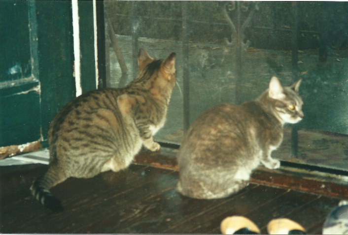 And then an adopted sister, a tiny grey kitten oozing affection, often literally, snuggling unabashedly into the people’s laps and purring until their shirts were wet with her contented drool. Any threat he felt from this interlocutor quickly fading away in the face of her innocuous obsequiousness. If anything her presence proving a boon, she flinging herself headlong into aspects of pet-hood that never came quite naturally to him. Settling smoothly into their roles, she the doughy ball of love, he skittish and feisty, still clinging to a hint of his near-forgotten wild beginnings. Becoming a team, scampering after each other, tumbling across the hardwood, knocking knick-knacks from shelves that should have been beyond their reach. Curling up together in a furry, grey-brown yin-yang when the clinging cold of a Deep South winter settled over the city.