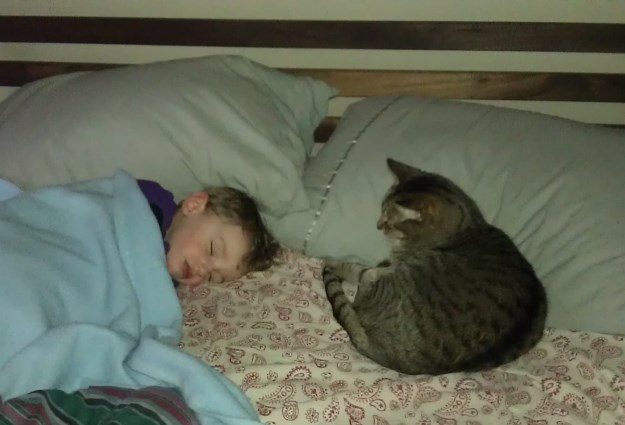 Peering tentatively at the mysterious bundle of cloth and flesh that appeared in the house one frigid afternoon, a squirming, guileless thing that was undoubtedly a living creature, but of what kind? The new thing eventually proving itself not a threat but not the same kind of partner that his sister had proven to be either. Keeping his distance from grabbing hands and unchecked slavering, learning to dread the shrieks and squeals the small one emitted at unpredictable intervals. Finally coming to understand the too-rough petting and startling exclamations as a new kind of love, savage and unchecked, summoning a deep memory of the ragged side-street fraternity of his own infancy. The two finally bonding in a friendly rivalry, jockeying nightly for plum position on the soft one’s lap with the hairy one droning and turning pages in storybooks. Curling beside the small one as he slept, savoring the flutter of tiny breaths against the fur of his neck.